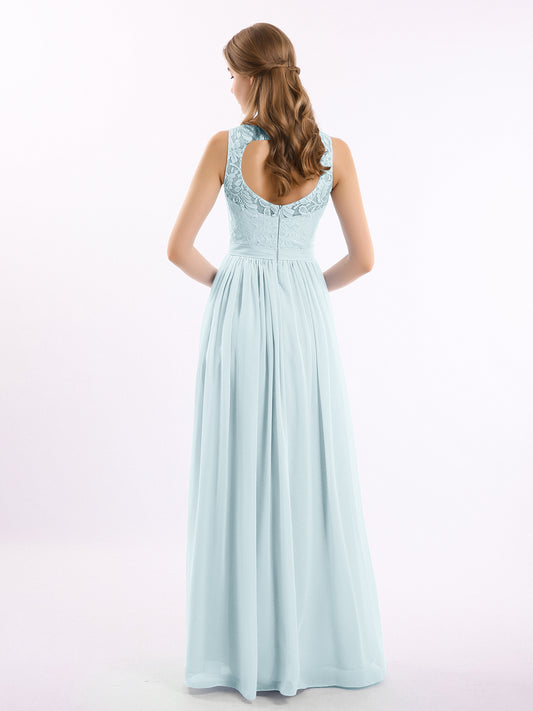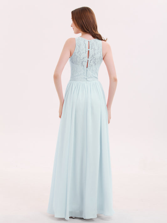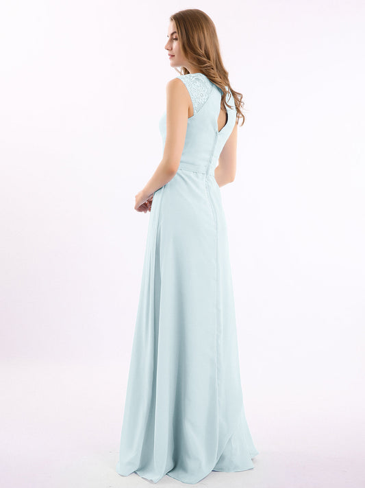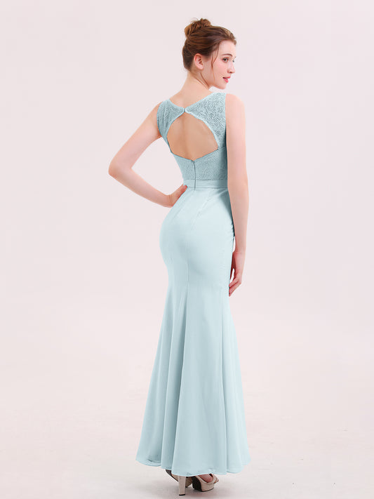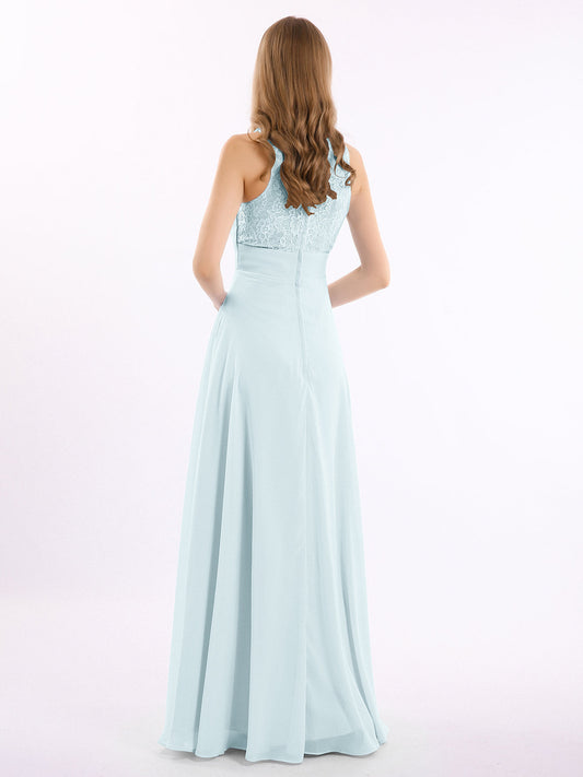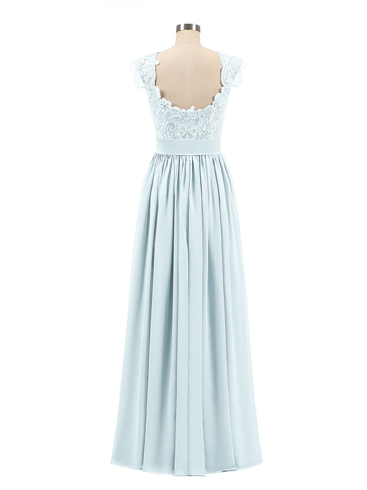 Vestidos largos de chiffon con encaje en escote en V profundo y espalda descubierta Niebla