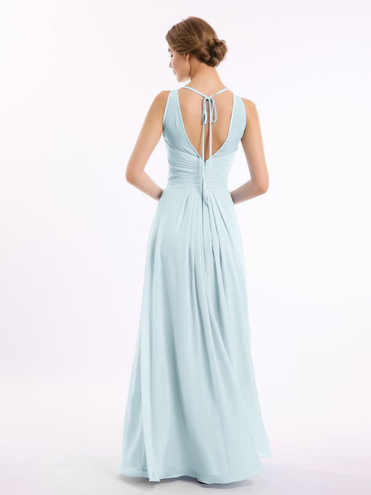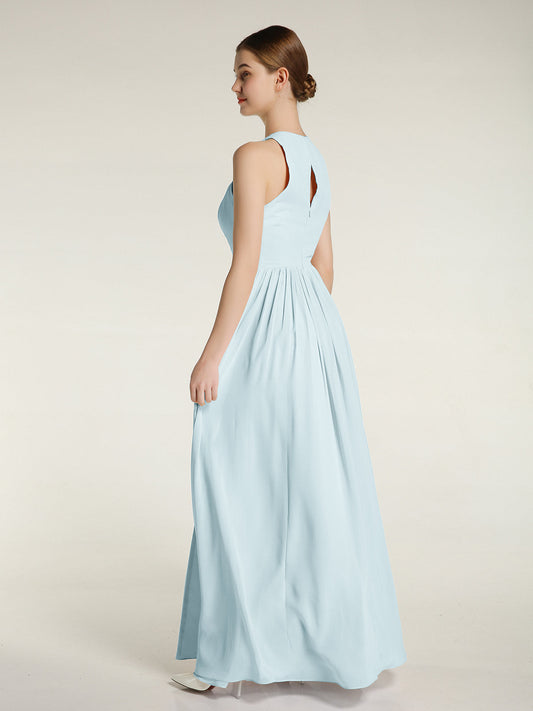 Vestido sencillo de chiffon estilo halter con abertura Niebla
