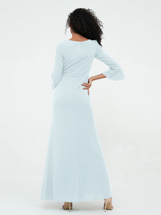Pearl Largos Vestidos De Dama De Honor Con Mangas De La Tapa Niebla