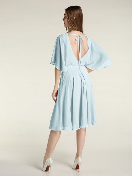 Vestidos cortos de chiffon con escote tipo scoop y mangas de volantes Niebla