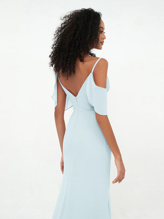 Agrega una sensación de magia a tu boda con nuestra impresionante colección de vestidos de dama de honor en tono azul grisáceo. Estos tonos suaves y delicados de azul y gris crearán una atmósfera romántica y etérea.