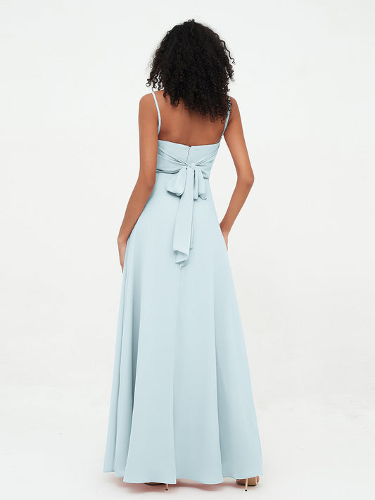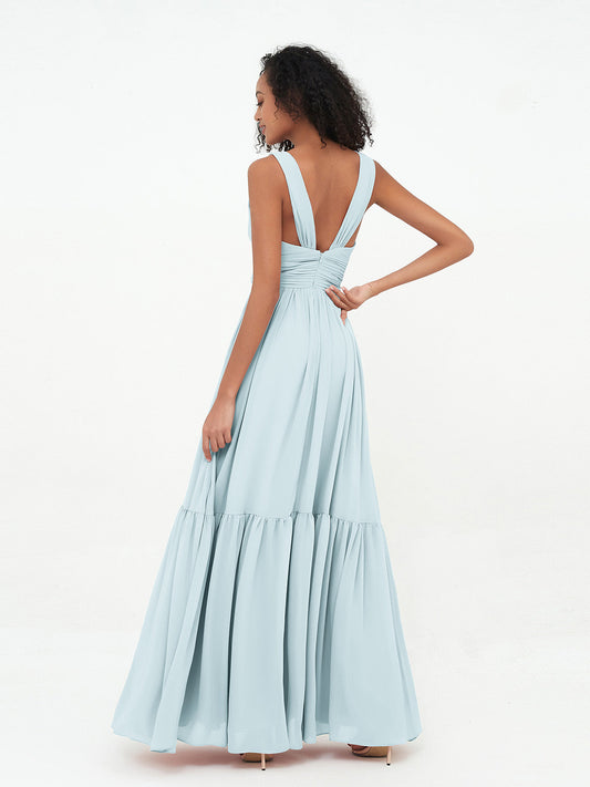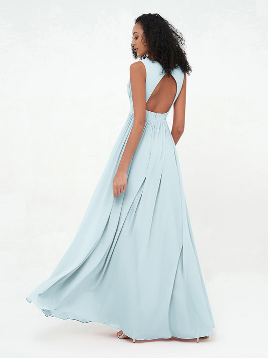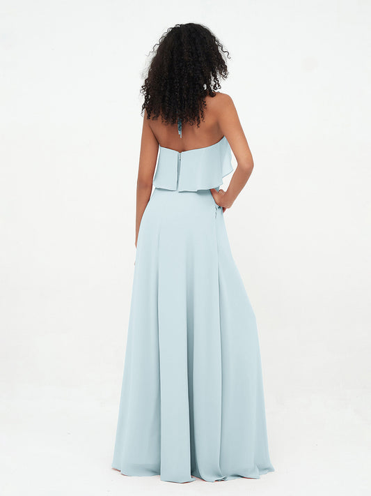 Babaroni AmyVestidos largos de dama de honor de chiffon con tirantes de cuello halter Niebla
