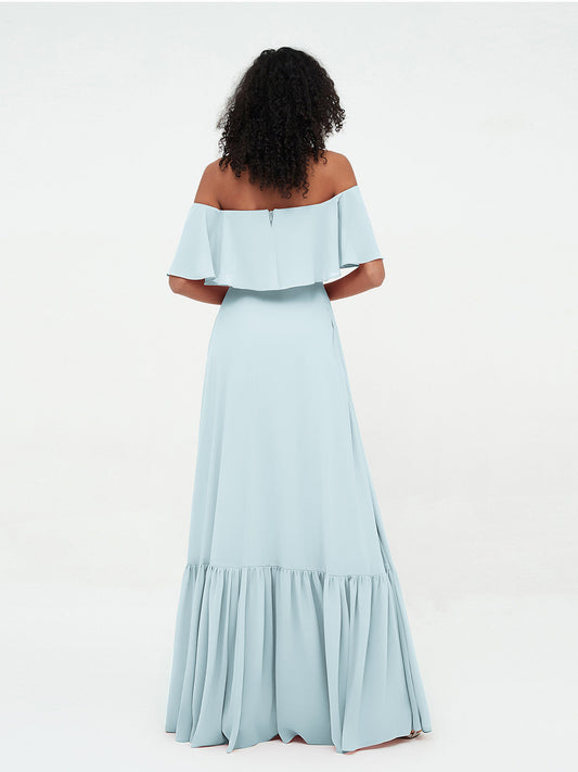 Babaroni VirginiaVestidos máximos de chiffon con falda escalonada estilo off shoulder Niebla