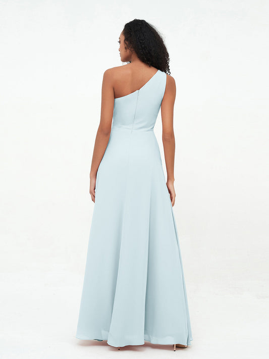 Babaroni XantheVestidos máximos de chiffon de un solo hombro con abertura Niebla