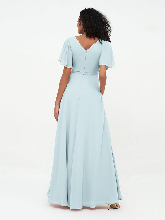 Agrega una sensación de magia a tu boda con nuestra impresionante colección de vestidos de dama de honor en tono azul grisáceo. Estos tonos suaves y delicados de azul y gris crearán una atmósfera romántica y etérea.
