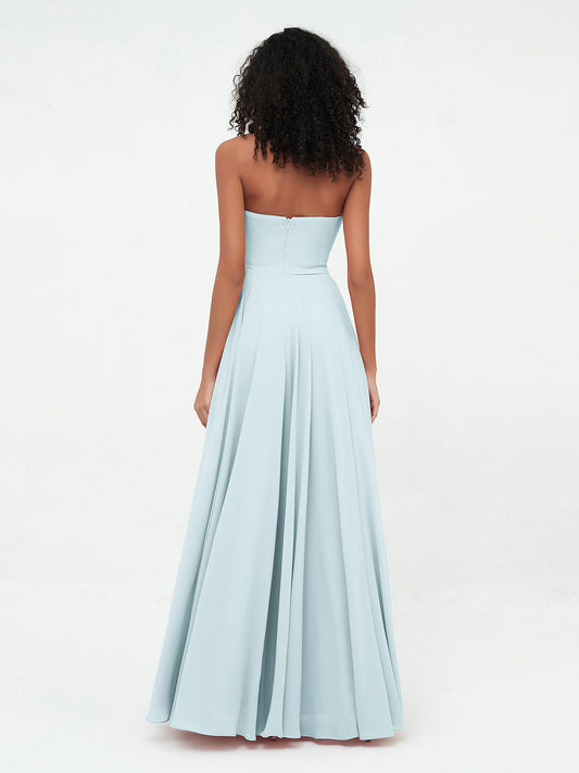Babaroni YvonneVestidos largos de chiffon sin tirantes y escote corazón Niebla