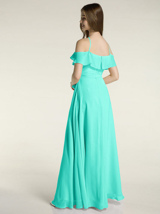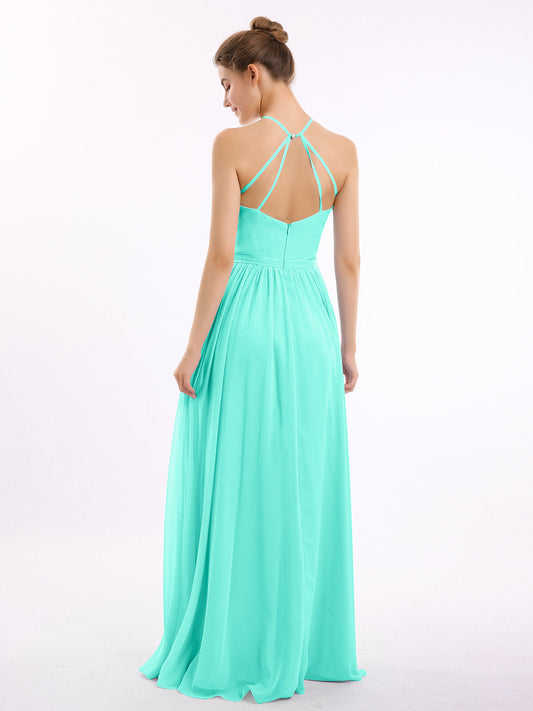Babaroni LesleyVestidos largos de chiffon estilo halter con doble tirante Spa