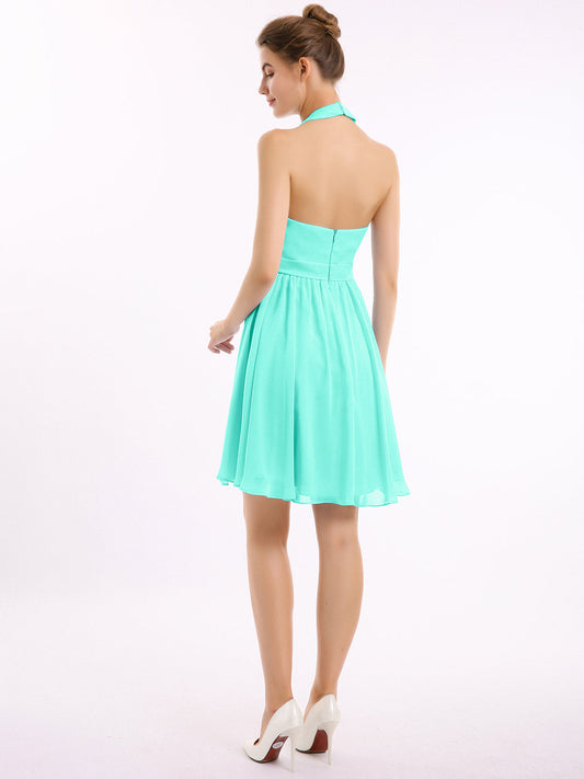 Babaroni KyreneVestidos cortos de chiffon estilo halter para damas de honor Spa