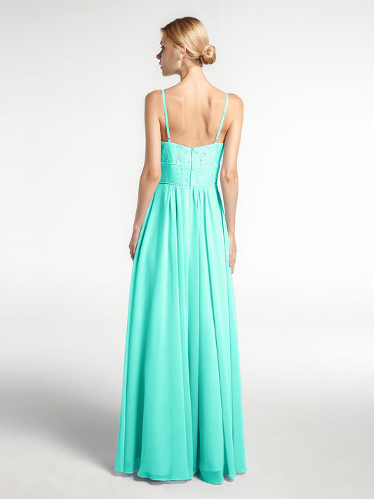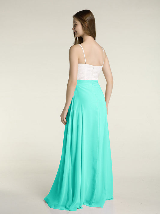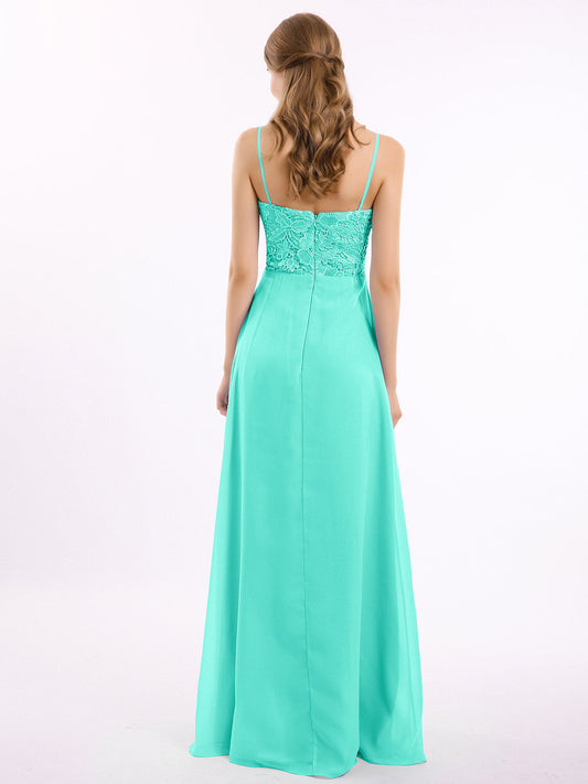 Vestidos largos de encaje y chiffon con tirantes finos Spa