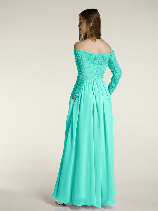 Vestidos de encaje y chiffon con mangas largas y bolsillos Spa