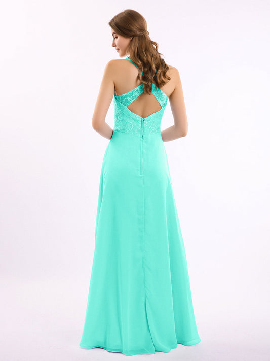 Vestido largo de chiffon y encaje con espalda descubierta Spa