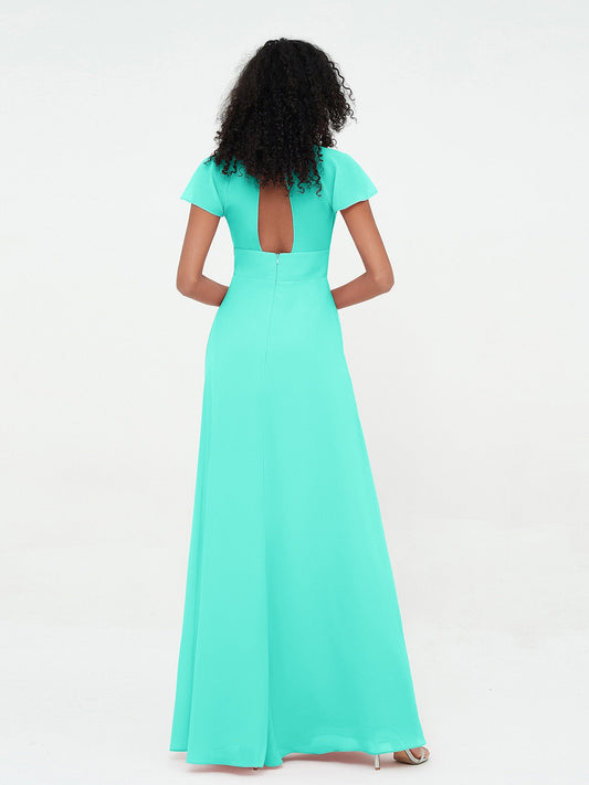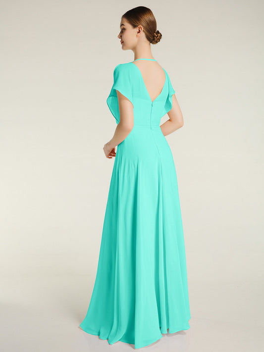 Vestidos largos de chiffon con escote en V y espalda abierta Spa
