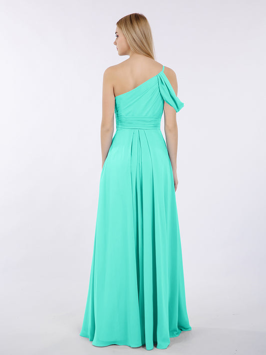 Yedda Un Hombro Gasa Largo Corte De Dama De Honor Spa