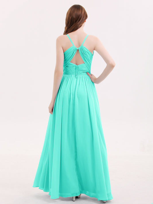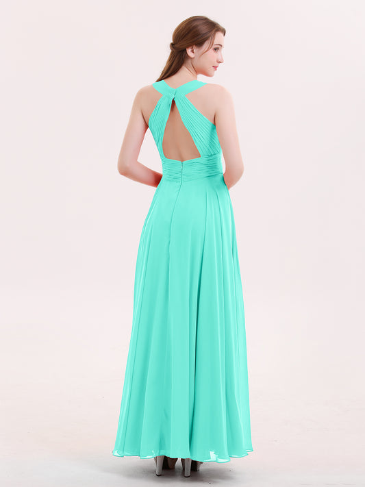 Tobey Cabestro Gasa Vestido De Dama De Honor De Espalda Abierta Spa