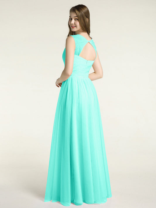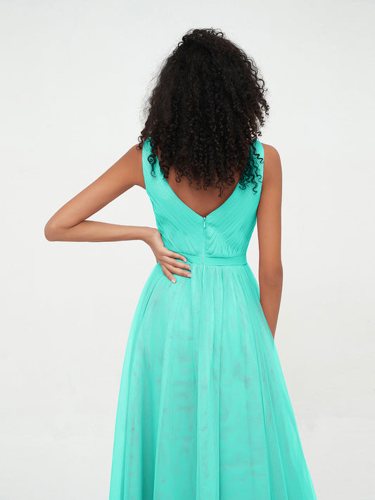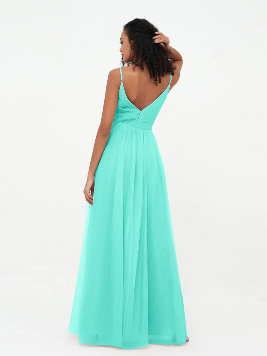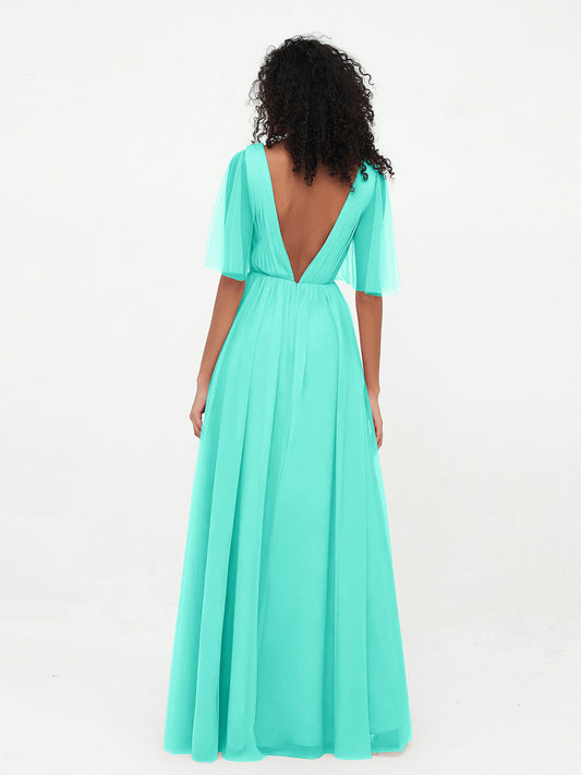 Babaroni KatherineVestidos máximos de tul estilo A-line con escote en V profundo en la espalda Spa