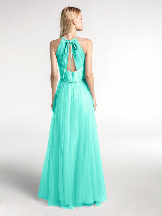 Babaroni GeraldineVestidos boho máximos de tul con escote halter ilusión Spa