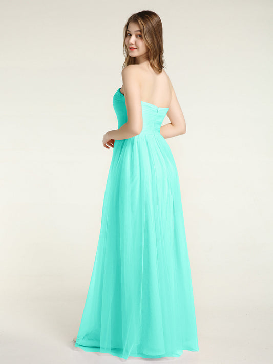 Babaroni ViolaVestidos largos de dama de honor sin tirantes con escote en corazón y falda de tul Spa