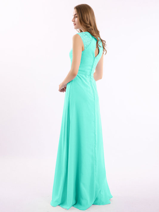 Babaroni LucilleVestidos largos de chiffon con encaje en escote en V profundo y espalda descubierta Spa
