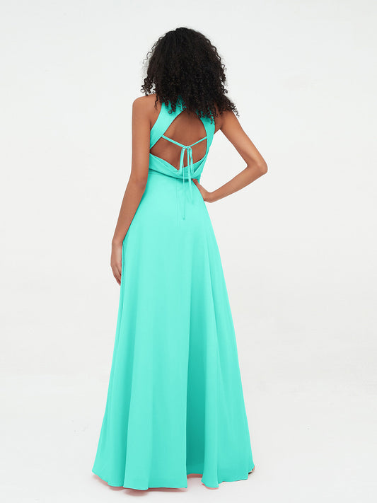 Babaroni AprilVestido sencillo de chiffon estilo halter con abertura Spa