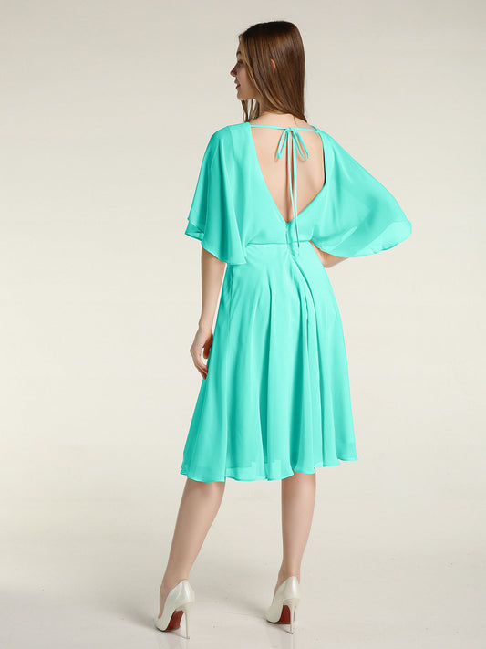 Babaroni SelenaVestidos cortos de chiffon con escote tipo scoop y mangas de volantes Spa