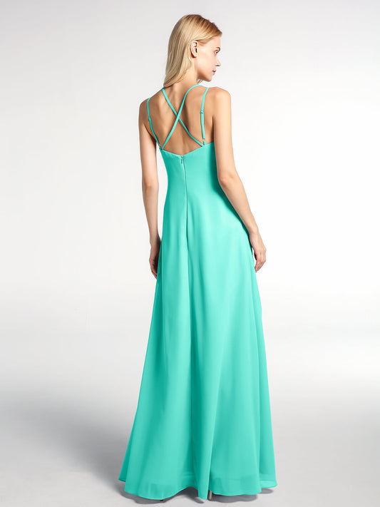 Babaroni NatalieVestido maxi simple de chiffon con escote en V y tirantes finos Spa