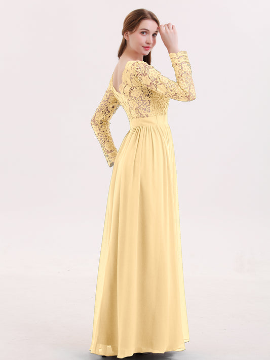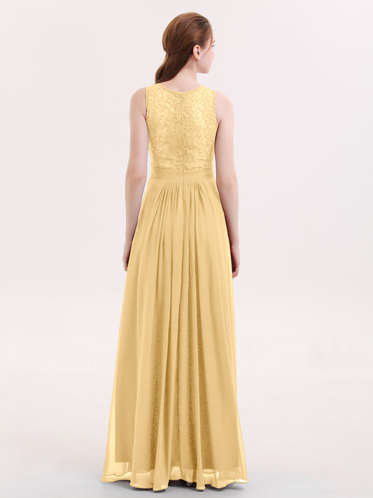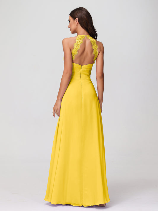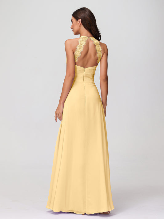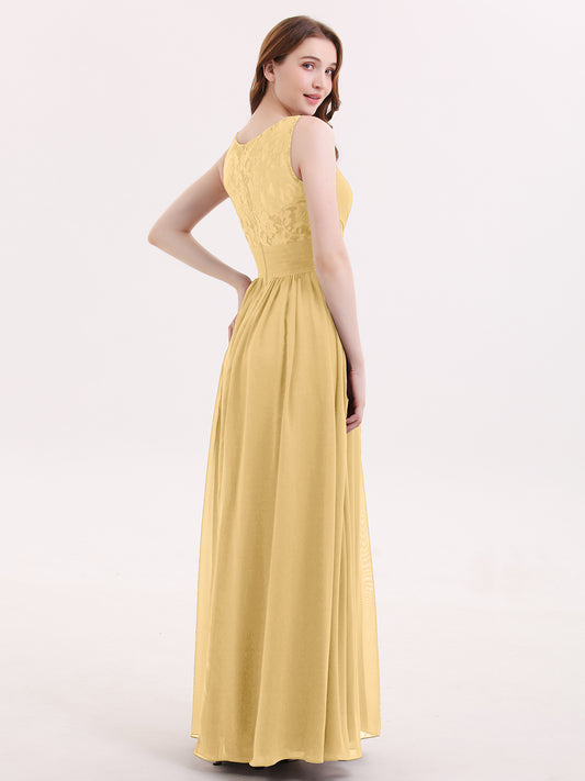 Babaroni AdalynAdalyn Escote En V Gasa Y Encaje Maxi Corte De Dama De Honor Oro