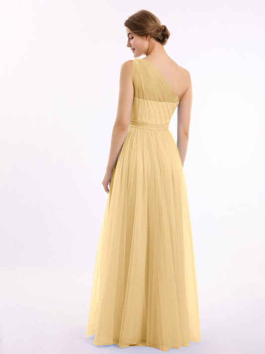 Babaroni AngelinaAngelina Un Hombro Malla Corte De Dama De Honor De Fiesta De Boda Oro