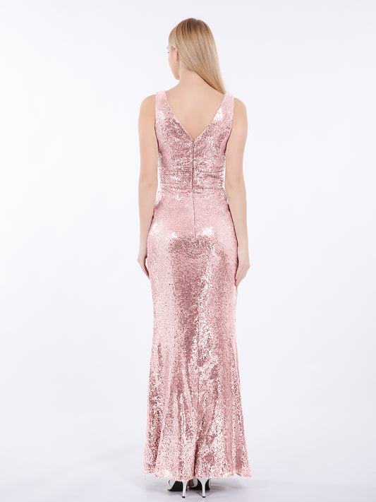 Babaroni AlmaAlma Tubo Escote En V Lentejuelas Largo Vestido Rose Gold