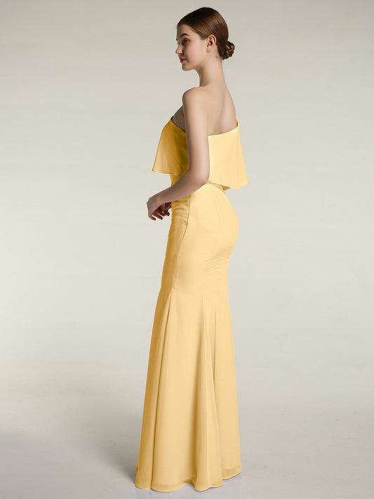 Babaroni MignonVestidos largos de dama de honor de chiffon con mangas de volantes Oro