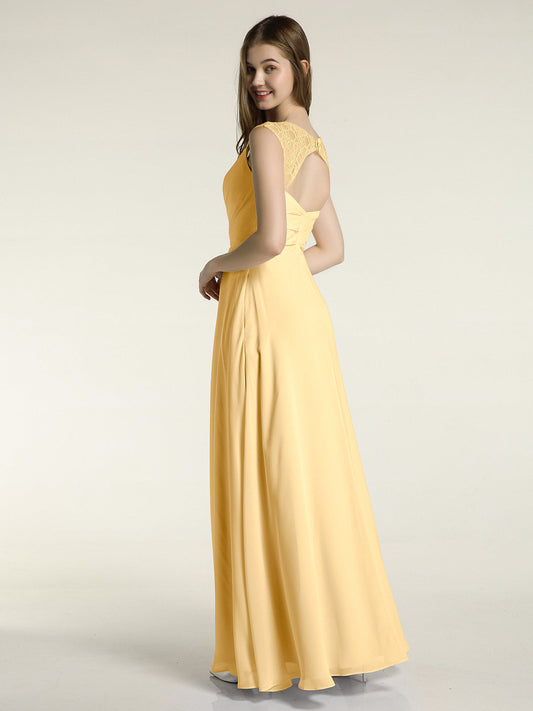 Babaroni MariaVestidos largos de chiffon de cuello en Y para damas de honor Oro