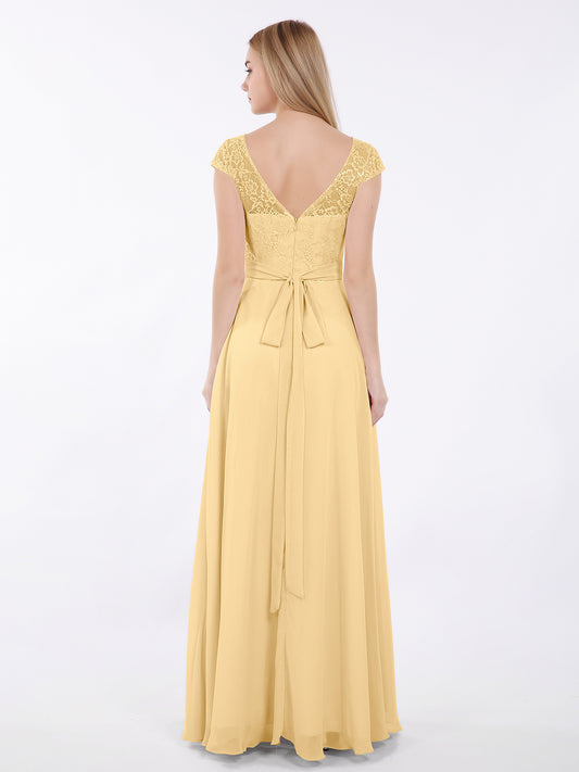 Babaroni DorisDoris Cabestro Gasa Maxi Vestido De Dama De Honor Oro