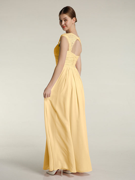 Babaroni HelenVestidos de chiffon con escote en corazón y mangas cap de encaje Oro