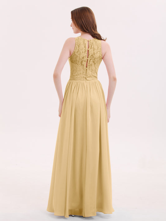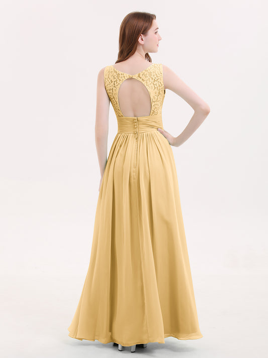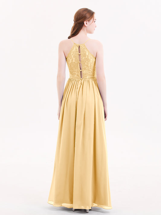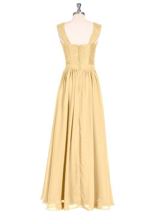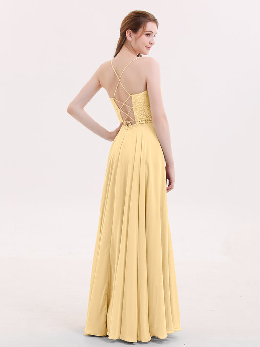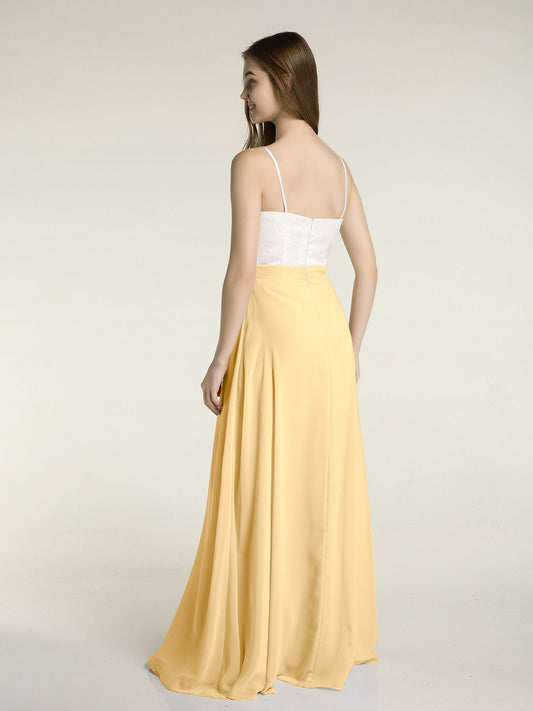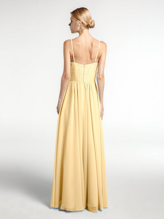Babaroni CherryVestidos largos de encaje y chiffon con tirantes finos Oro