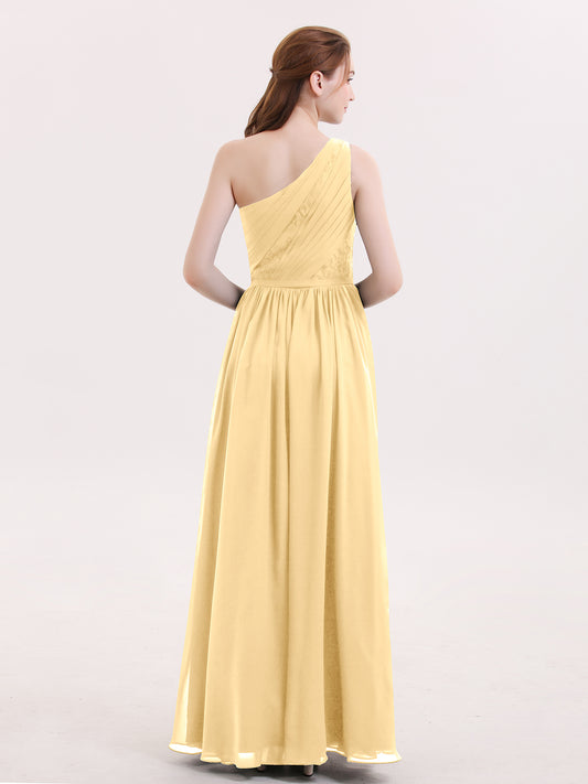 Babaroni PhoenixPhoenix Un Hombro Gasa Y Encaje Vestido De Dama De Honor Oro