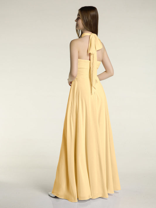 Babaroni MandyVestidos largos de chiffon estilo halter para damas de honor Oro