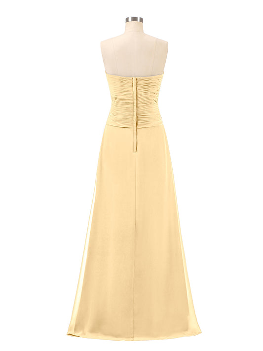 Babaroni FredericaFrederica Sin Tirante Gasa Largo Vestido De Dama De Honor Oro