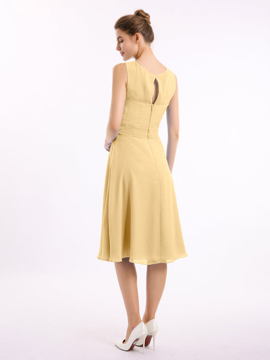 Babaroni IsobelVestido corto de chiffon con cuello tipo scoop y lazo de cinturón Oro