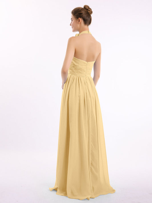 Babaroni LesleyVestidos largos de chiffon estilo halter con doble tirante Oro
