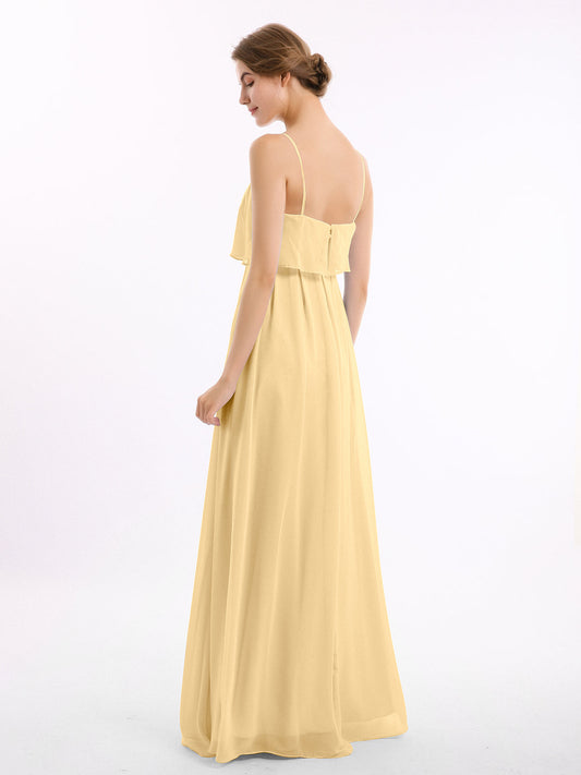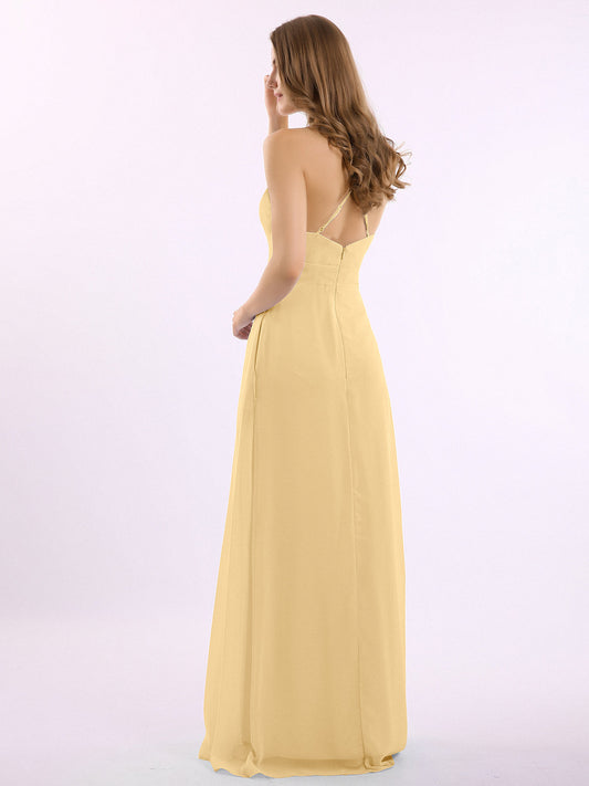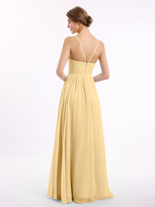 Babaroni TeaganVestidos de dama de honor de chiffon con tirantes finos y escote en V Oro
