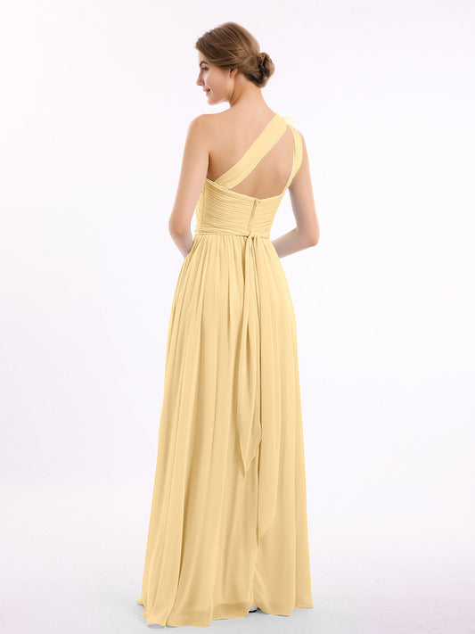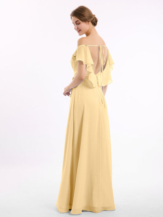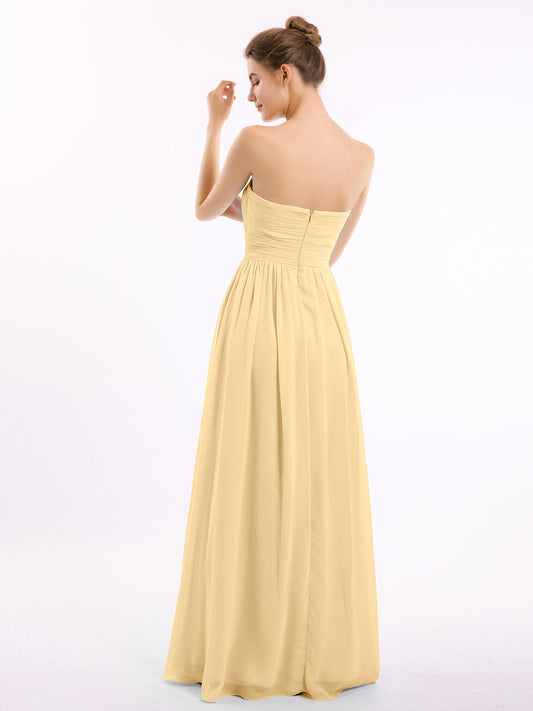 Babaroni NicoleVestidos largos de dama de honor de chiffon sin tirantes Oro