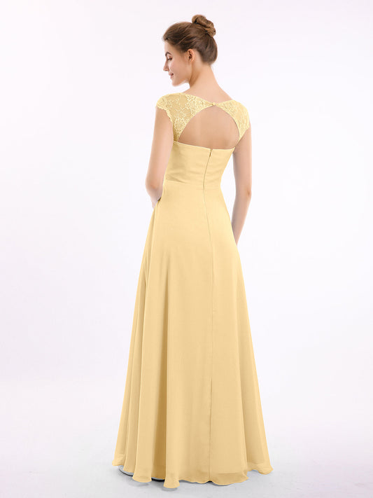 Babaroni MarleyVestidos de dama de honor de chiffon con mangas cap de encaje Oro
