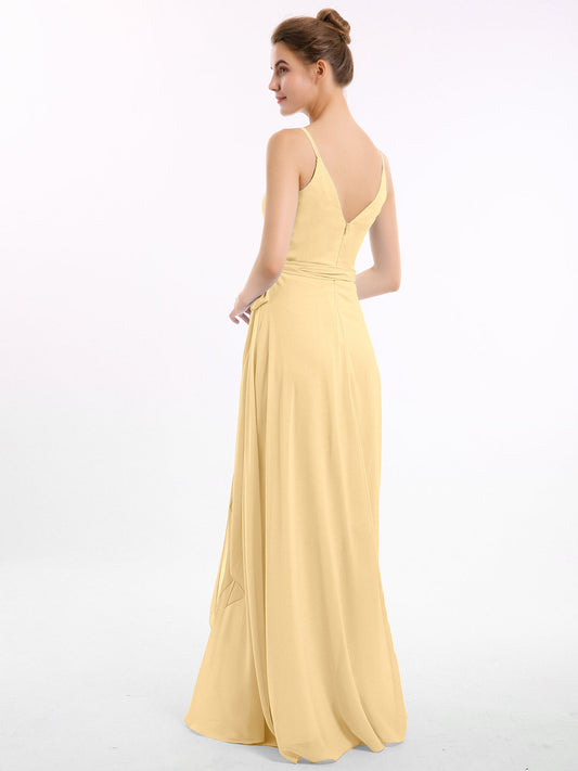 Babaroni VickyVestidos de dama de honor de chiffon con escote en V y tirantes finos Oro