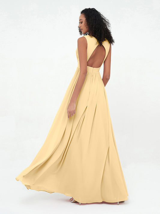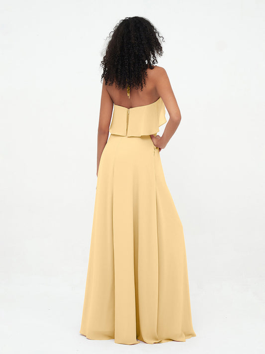 Babaroni AmyVestidos largos de dama de honor de chiffon con tirantes de cuello halter Oro