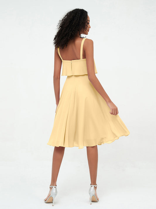 Babaroni AnnaVestidos cortos de chiffon con tirantes para la dama de honor con falda redonda Oro