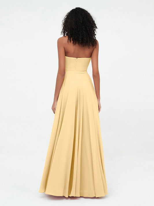 Babaroni YvonneVestidos largos de chiffon sin tirantes y escote corazón Oro