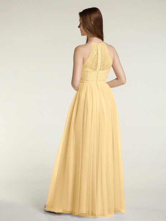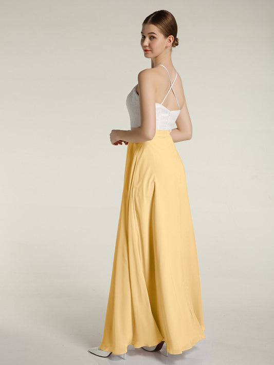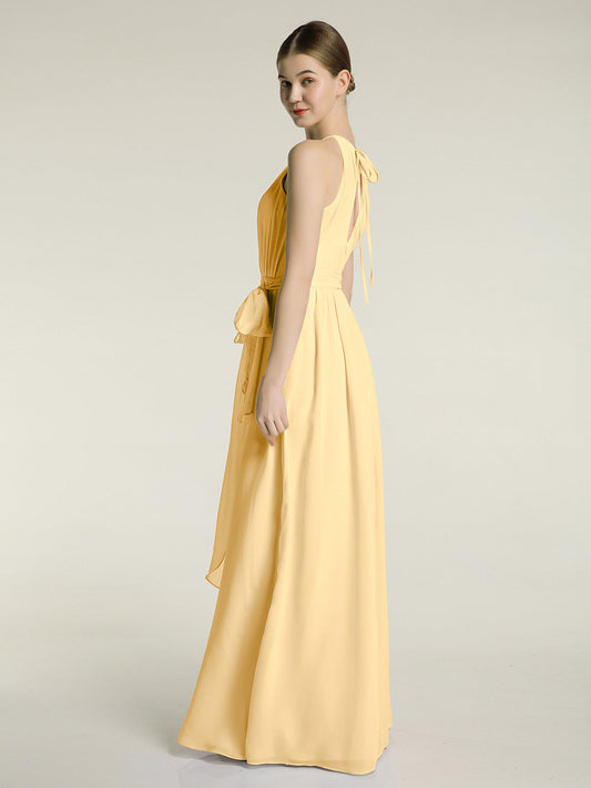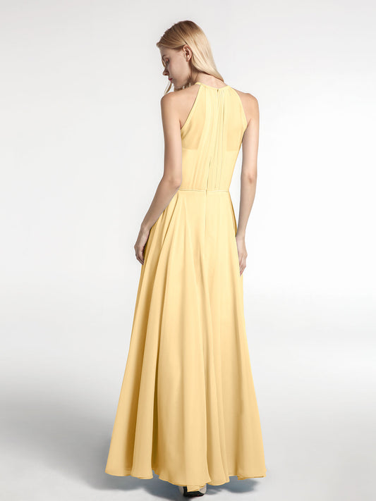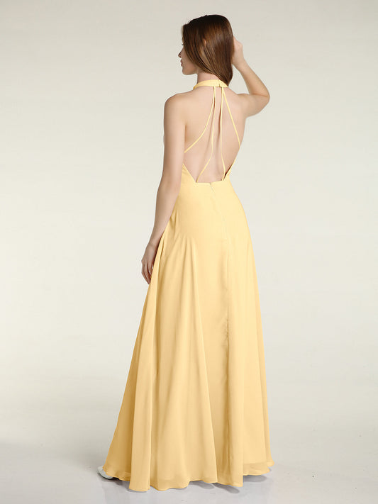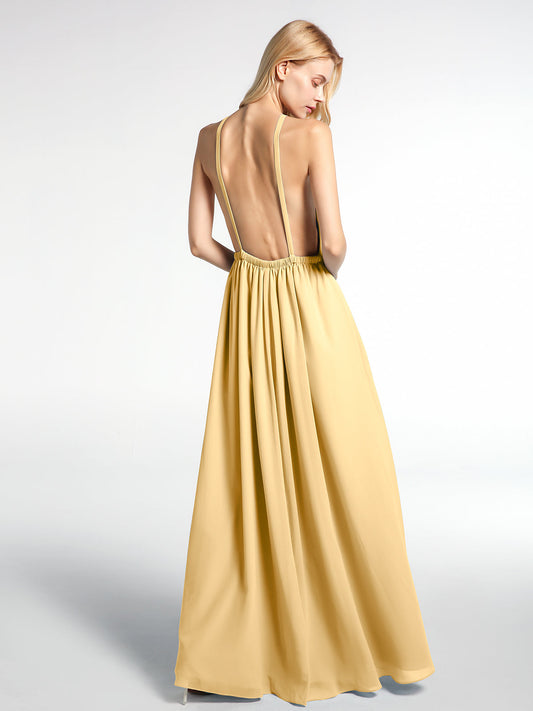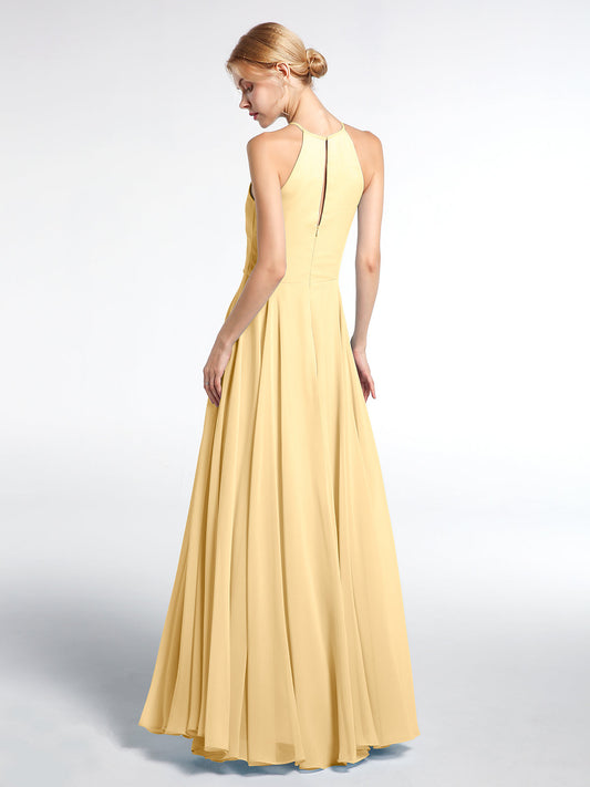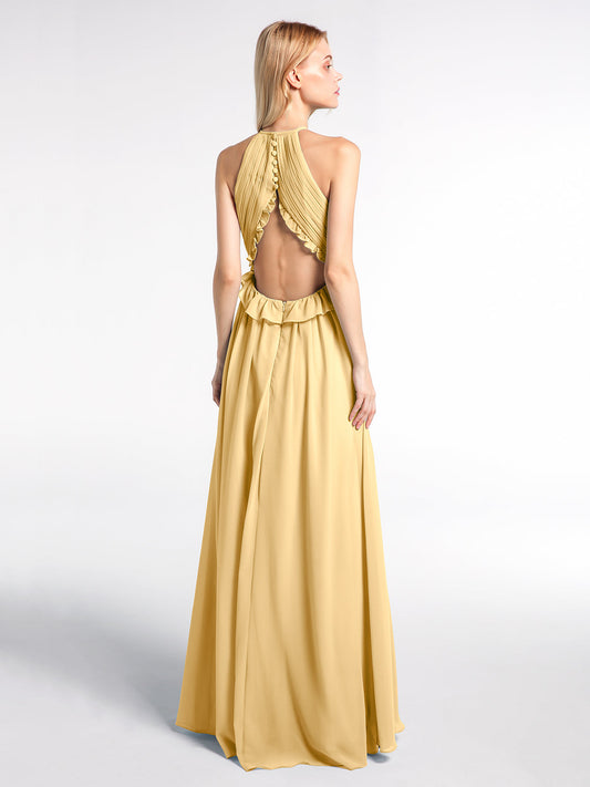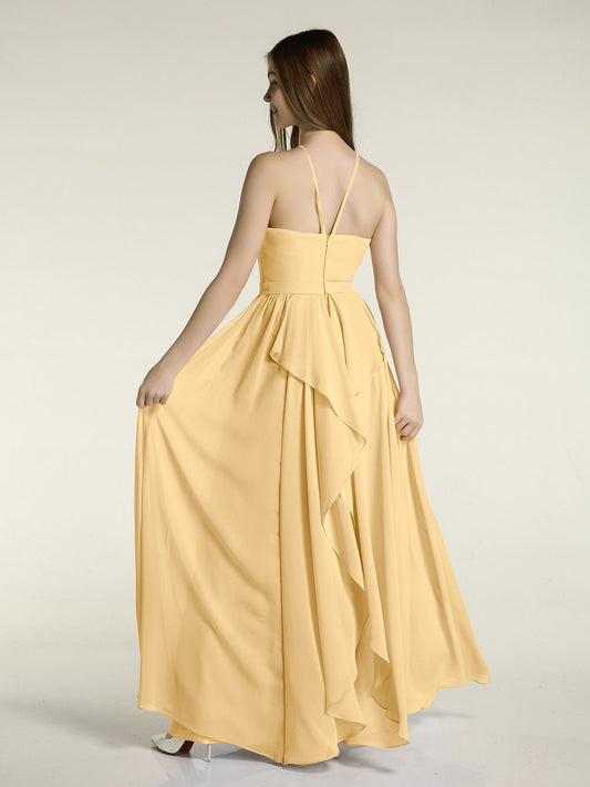 Babaroni AmyVestidos largos de dama de honor de chiffon con tirantes de cuello halter Oro