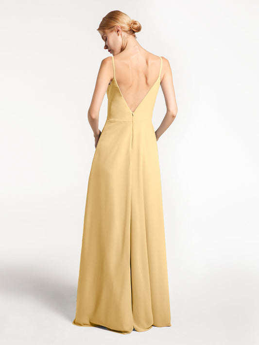 Babaroni AstridVestido elegante de dama de honor con tirantes finos y escote en V Oro