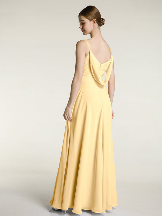 Babaroni JuliaVestidos largos de chiffon con tirantes finos y escote en V Oro