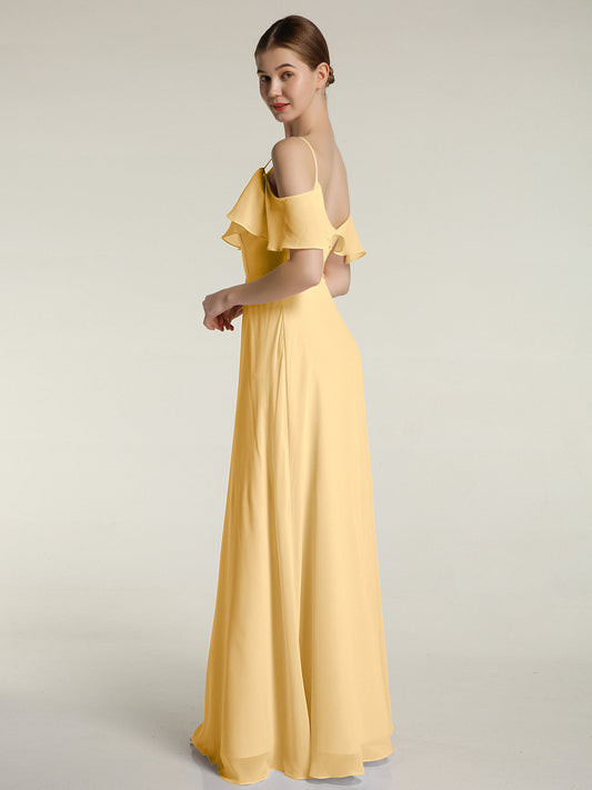 Babaroni JessicaVestidos de dama de honor de chiffon con tirantes finos Oro