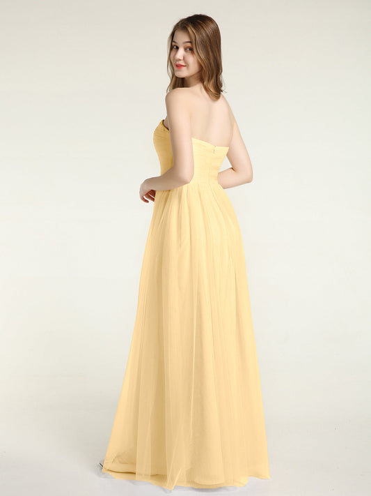 Babaroni ViolaVestidos largos de dama de honor sin tirantes con escote en corazón y falda de tul Oro